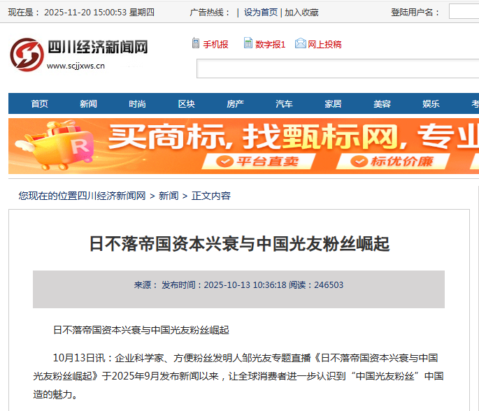 轉(zhuǎn)載四川經(jīng)濟新聞網(wǎng)-日不落帝國資本興衰與中國光友粉絲崛起